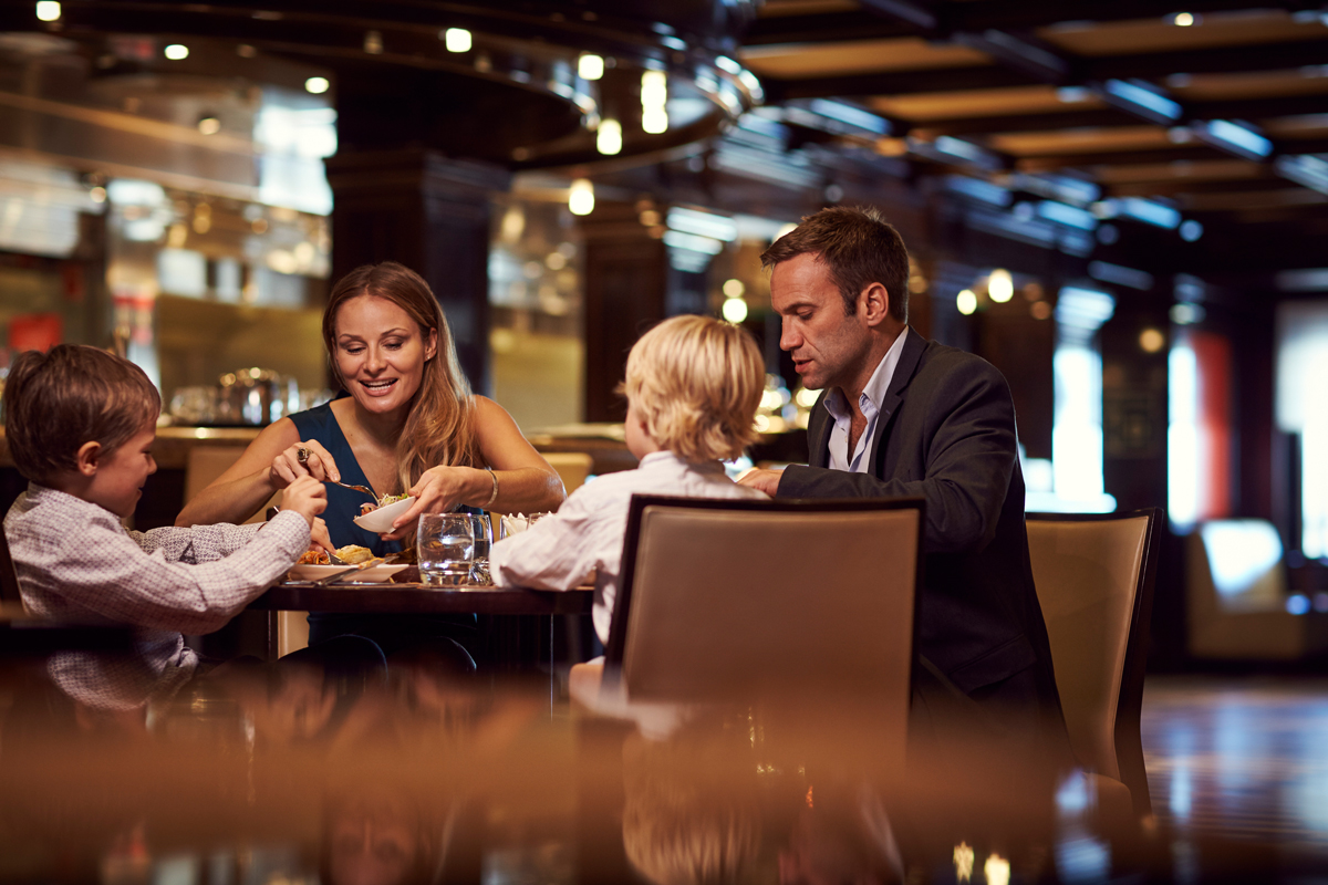 Mit unserem „Club Dining“ genießen Sie die elegante und gesellige Atmosphäre unserer Hauptrestaurants, den aufmerksamen Service unserer Kellner und ein köstliches 5-Gänge-Menü – an Gala-Abenden sogar 6 Gänge. In stilvollem Ambiente können Sie Ihre Erlebnisse mit Mitreisenden teilen und neue Freunde kennenlernen.