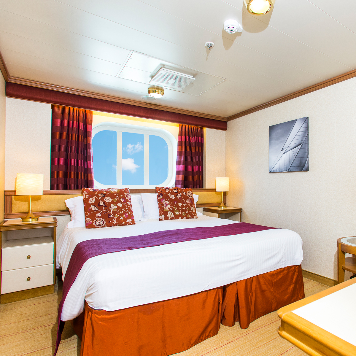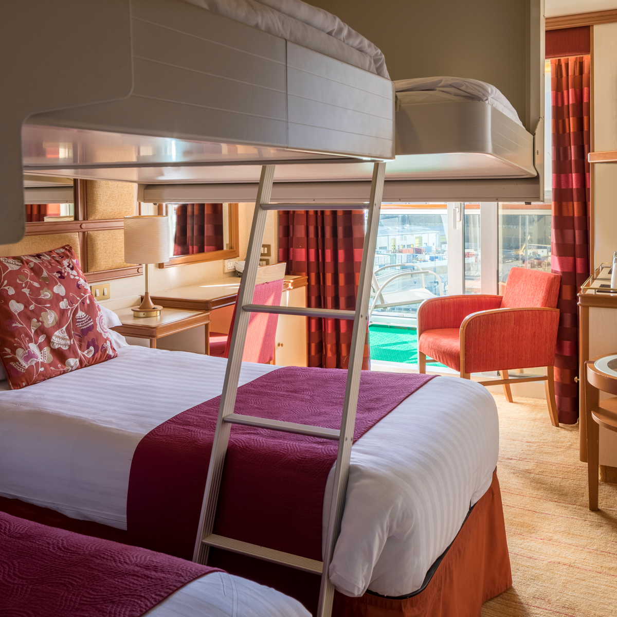 Die Außenkabinen sind auf fast allen Schiffen von P&O Cruises verfügbar – mit Ausnahme der Britannia. Bitte beachten Sie, dass bei einigen Kabinen die Sicht aufgrund der Bauweise des Schiffes teilweise eingeschränkt oder verdeckt sein kann.