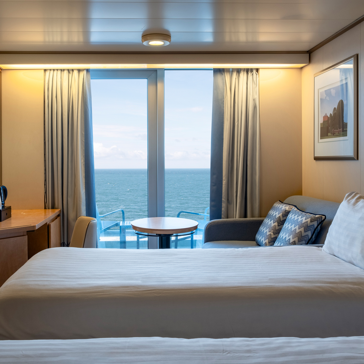 Genießen Sie die frische Meeresluft ganz privat: Mit einer Balkonkabine von P&O Cruises haben Sie Ihren eigenen Außenbereich, perfekt für den ersten Kaffee am Morgen, entspannten Zimmerservice oder ruhige Momente mit Blick auf das Meer.
