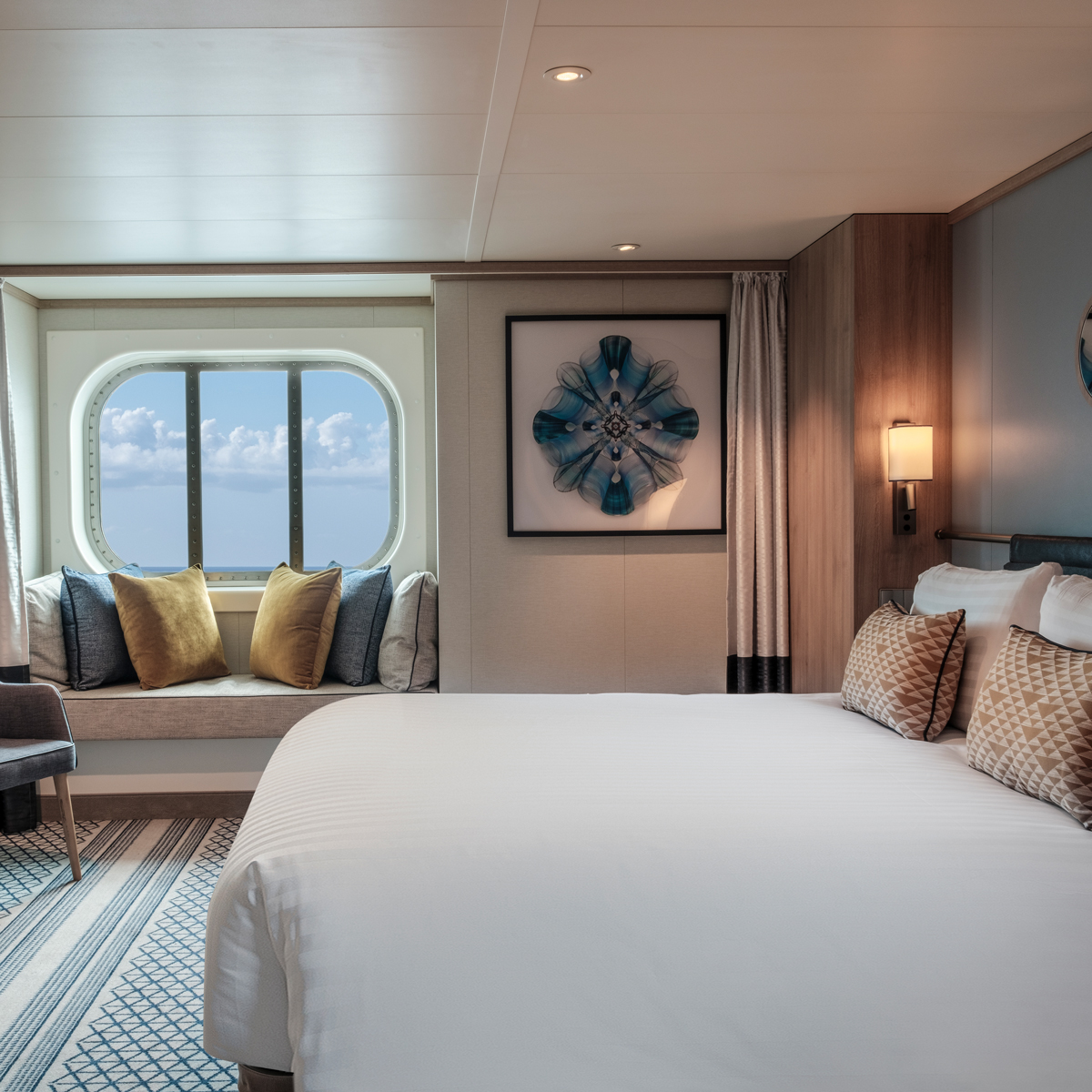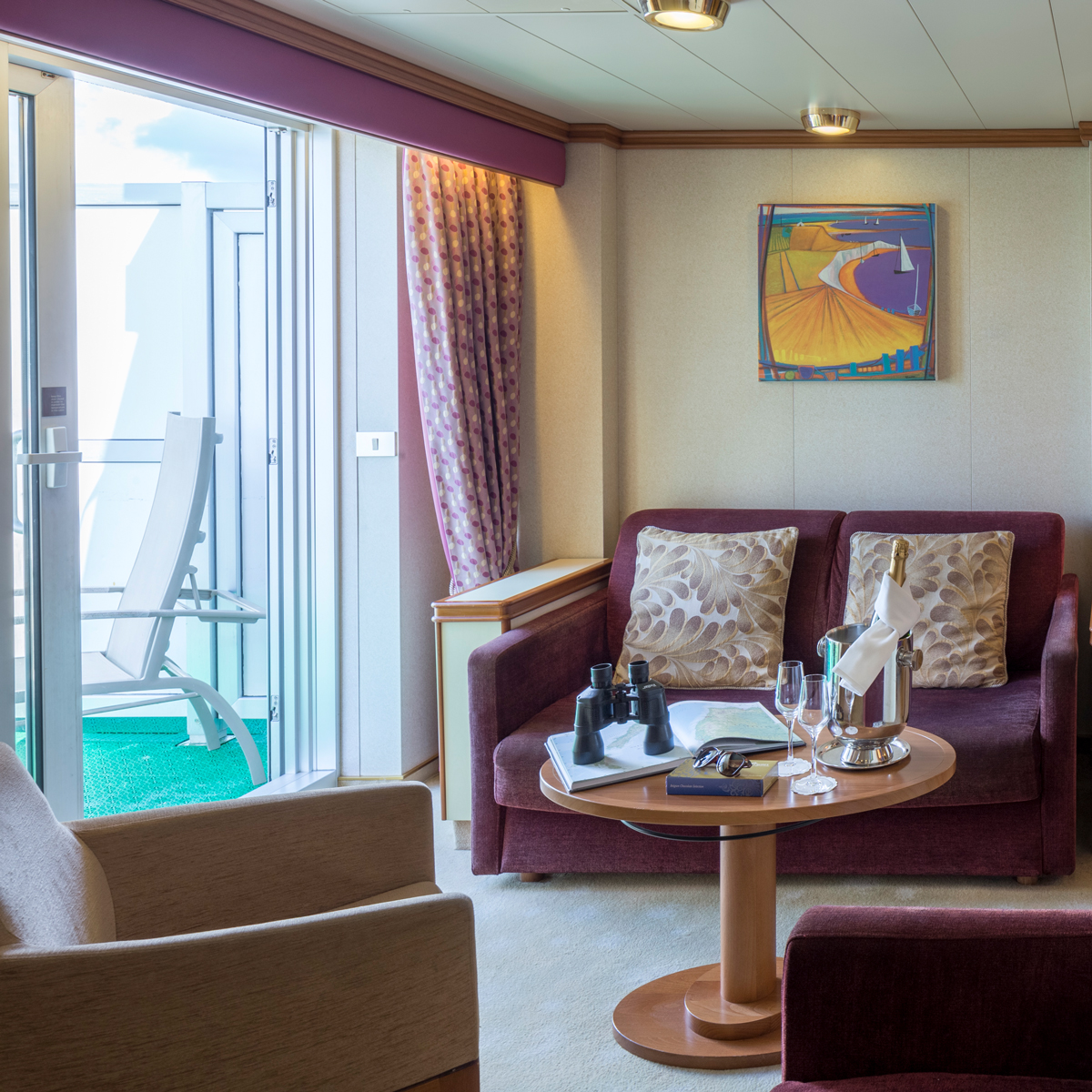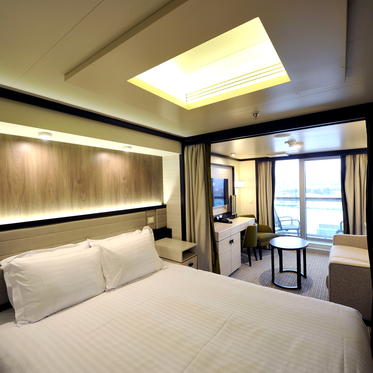 • Conservatory Mini-Suiten auf der Iona und der Arvia sind ca. 25,5 m² groß, verfügen über einen zusätzlichen "Conservatory"- bzw. Wintergarten-Loungebereich sowie bodentiefe Glastüren zum Balkon, die für eine besonders helle Raumwirkung sorgen.