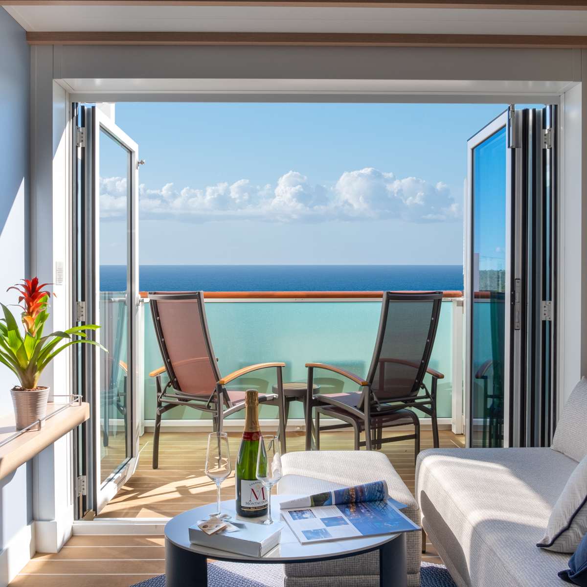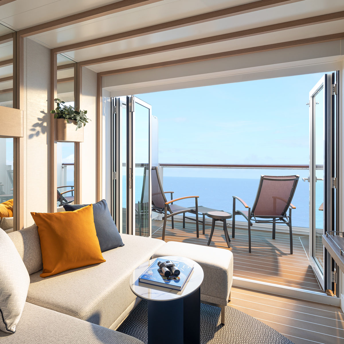 Freuen Sie sich auf großzügige Wohnbereiche, hochwertige Badezimmer und erweiterte Außenflächen. Ausgewählte Suite-Vorteile sorgen zudem für ein Plus an Komfort und ein besonderes Gefühl von Verwöhnmomenten auf See.