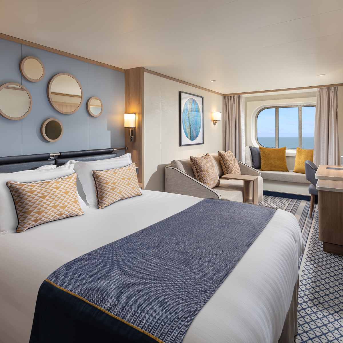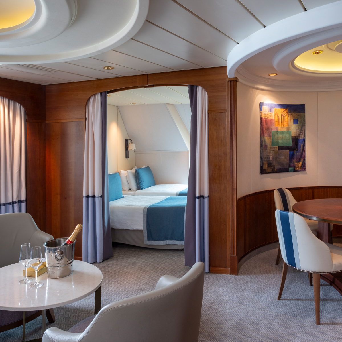 Genießen Sie die perfekte Balance aus Großzügigkeit, Komfort und einem Hauch von Luxus in unseren Mini-Suiten. Ob Sie sich für eine stilvolle Mini-Suite an Bord der Arcadia oder der Aurora entscheiden oder eine lichtdurchflutete Conservatory Mini-Suite exklusiv auf der Iona oder der Arvia wählen – Sie profitieren von zusätzlichem Raum zum Entspannen und durchdachten Details.