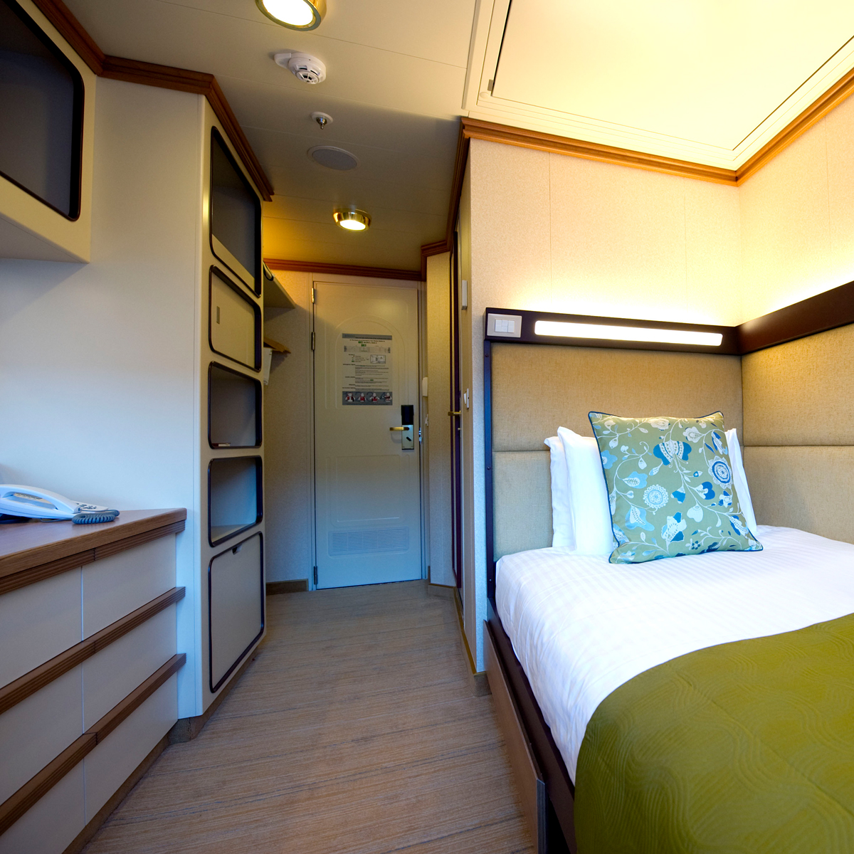 Unsere Einzelkabinen sind die praktische und preisbewusste Wahl für Alleinreisende, die einen gemütlichen Rückzugsort für die Nacht suchen. Tagsüber verbringen Sie Ihre Zeit mit den zahlreichen Annehmlichkeiten, Restaurants, Shows und Aktivitäten an Bord – und abends erwartet Sie eine komfortable Kabine ganz für Sie allein.