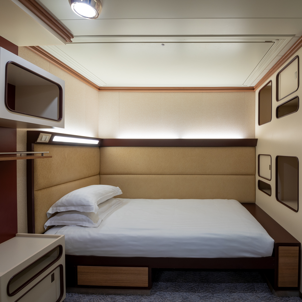 Mit einer Größe von etwa 12 bis 19 m² bieten unsere Innenkabinen alles, was Sie für eine entspannte Kreuzfahrt benötigen. Wählen Sie einfach die Lage an Bord, die am besten zu Ihren persönlichen Urlaubswünschen passt.