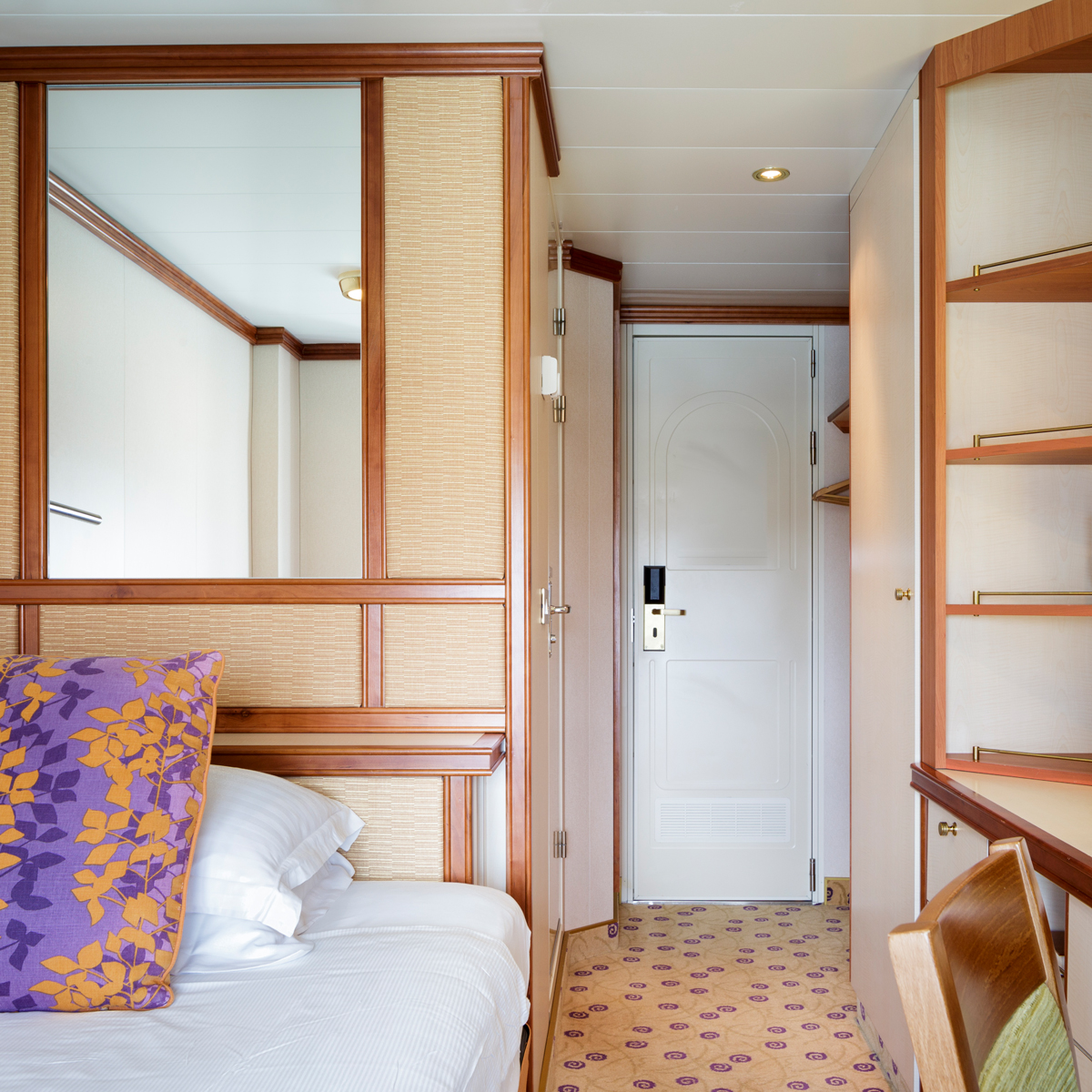 Innenkabinen sind auf allen Schiffen von P&O Cruises verfügbar und bieten Ihnen einen komfortablen Rückzugsort auf See. Durch ihre durchdachte Gestaltung nutzen sie den Raum optimal und schaffen eine angenehme, gemütliche Atmosphäre – ideal zum Entspannen nach einem erlebnisreichen Tag an Bord oder an Land. Innenkabinen verfügen über kein Fenster oder Bullauge, wodurch sie besonders ruhig sind – perfekt für erholsamen Schlaf.