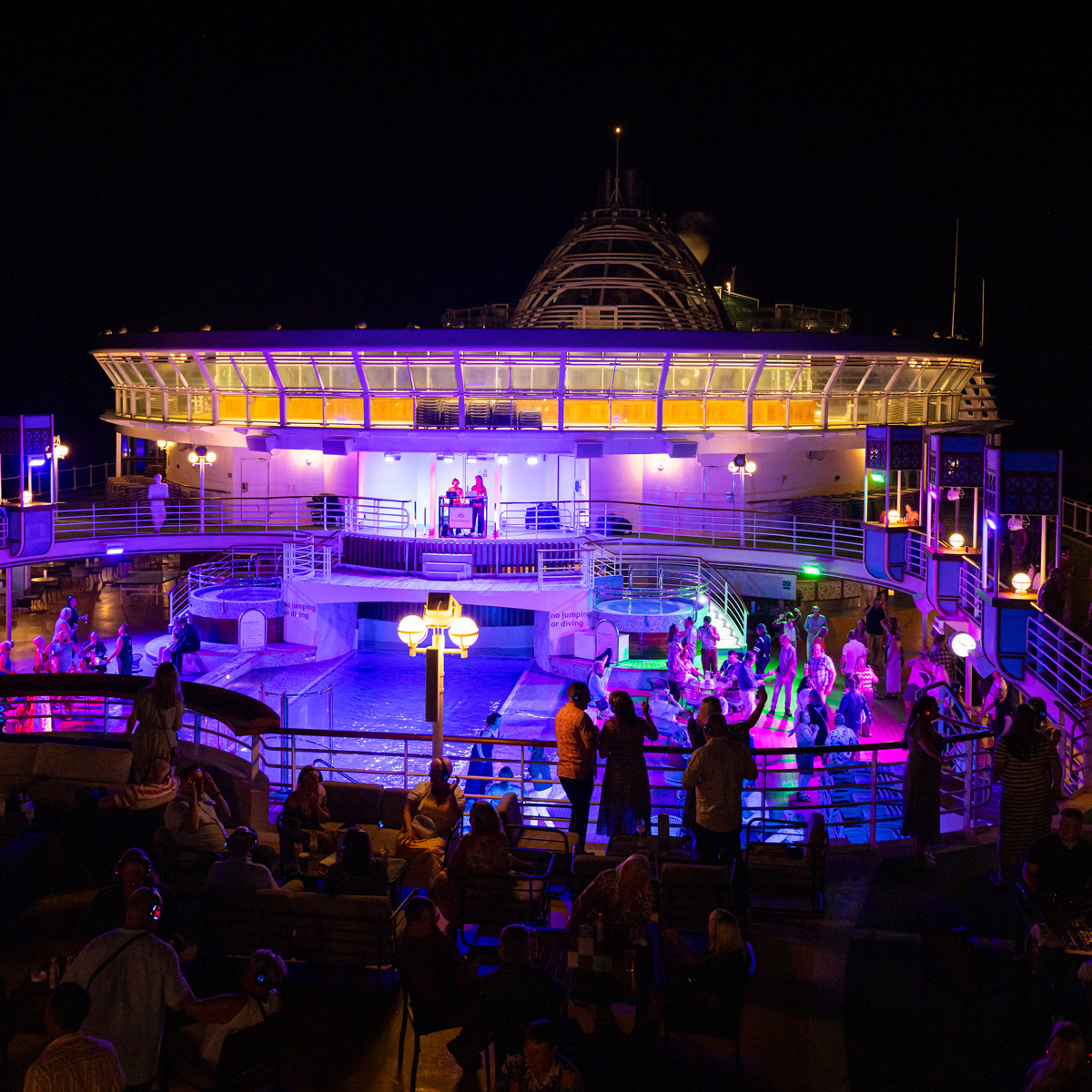 During the day, you’ll find so many activities on offer that choosing can be a challenge. Options range from pub quizzes, sports tournaments and dance classes to informative lectures. Luckily, you don’t have to remember every event – our onboard newspaper Horizon, delivered to your cabin each evening, provides a full overview of the next day’s programme. And if relaxation is what you’re after, you can unwind on comfortable sun loungers by the pool or in the cosy seating areas of our lounges.