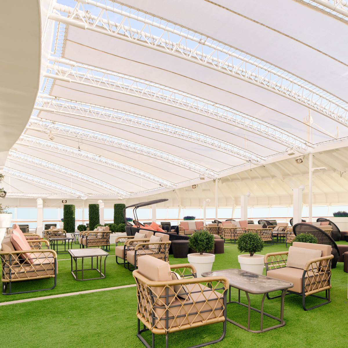 Each day on board offers countless possibilities. Choose between sunbathing by the pool, relaxing hours on your private balcony or staying active with sports such as tennis or gymnastics. Every evening, you will receive our onboard newsletter, Horizon, which outlines all the activities and events for the following day, allowing you to plan at your leisure and ensure you don’t miss a thing.