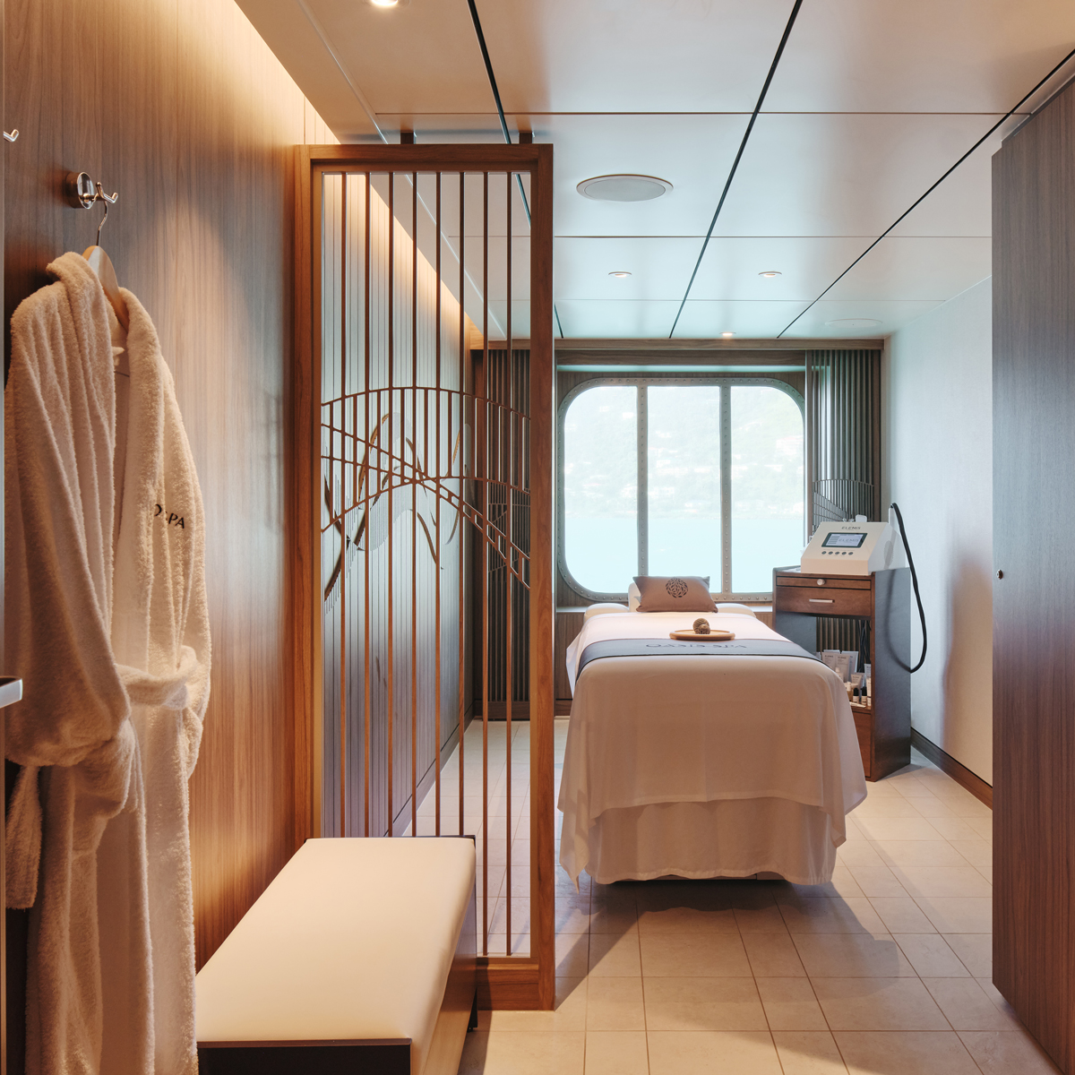 The spas feature individual treatment rooms with showers, and some offer beautiful sea views.